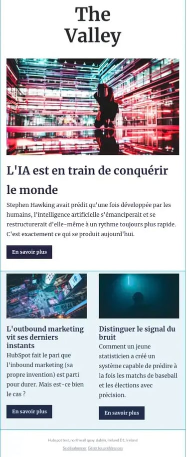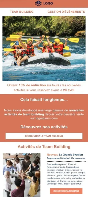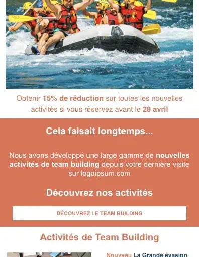 Nous construisons un message clair et bien structuré, avec un design qui met en valeur les infos clés et incite à cliquer.